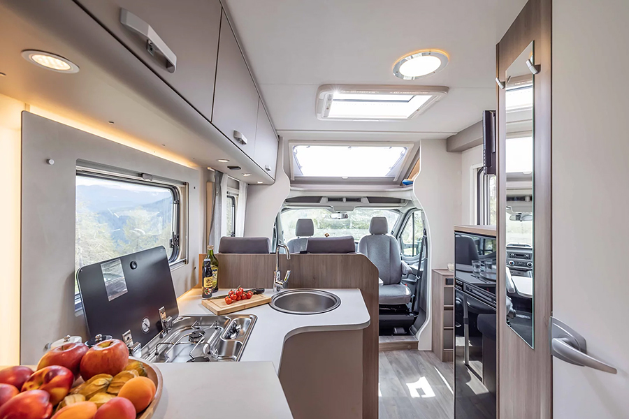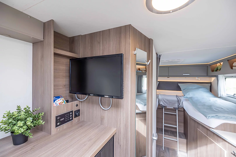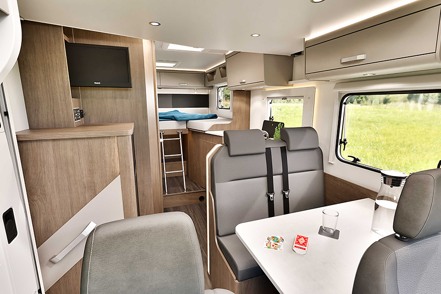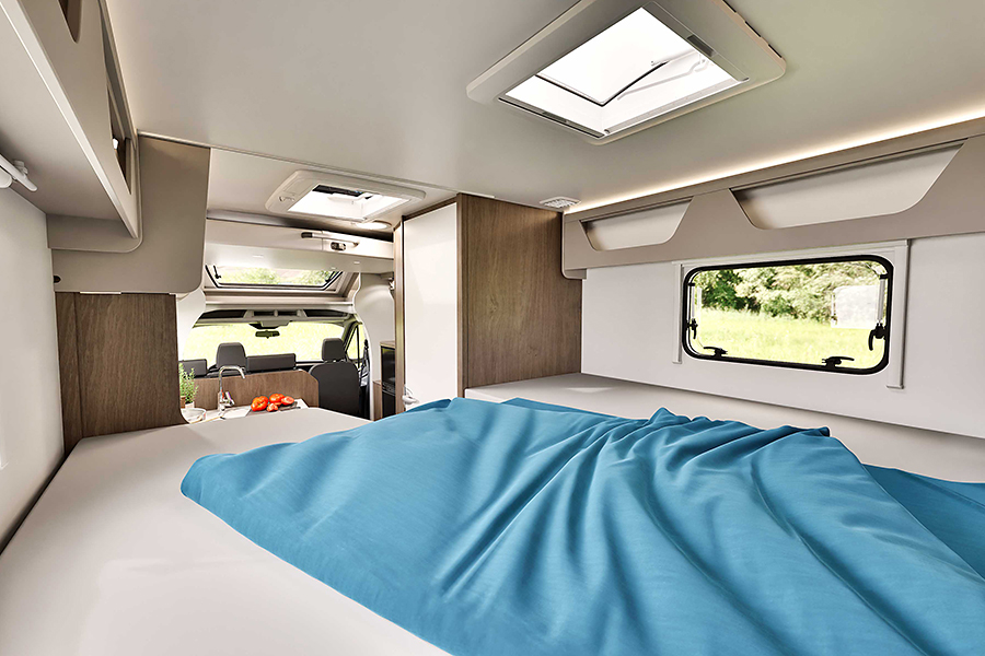 Klimaanlage im Fahrerhaus, großer Bildschirm mit Apple Carplay, große Markise, WLAN/Smart-TV, Fußbodenheizung, Solar, Einzel- oder Doppelbett, Hubbett, Sondermodell "Edition26", große Heckgarage